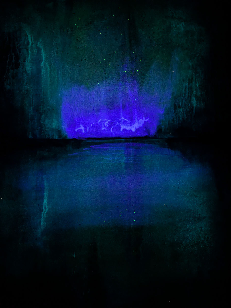 "Lumina"/ Mischtechnik auf Leinwand / 80x60cm / 2025 im Dunkeln